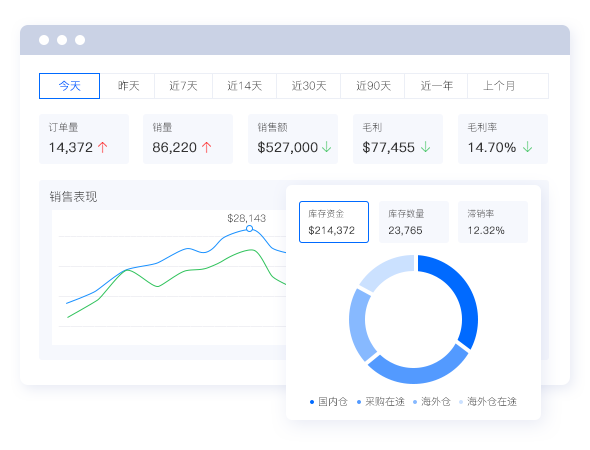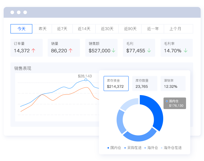 多个海外仓无法同频管理,难以清楚掌握在库、在途SKU,库存周转率较低